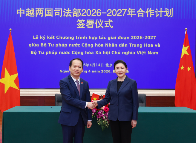 贺荣会见越南司法部部长黄青松