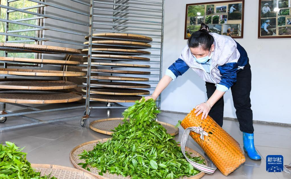 4月10日,在海南省五指山市水满乡毛纳村,茶农在手工茶坊内工作。新华社记者 杨冠宇 摄