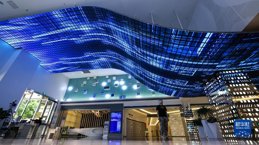 工作人员在国家大数据(贵州)综合试验区展示中心观看LED显示屏(5月26日摄)。新华社记者 欧东衢 摄